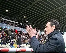 On 6 June 2019, the club was sold to Italian-American billionaire Rocco Commisso for around 160 million euros.[19] The sale marked the end of the Della Valle family's seventeen-year association with the club.[20] Vincenzo Montella was confirmed as coach for the first season of the new era despite the team's poor end to the previous campaign, which saw them finish only three points clear of the relegation zone.[21] Fiorentina continued their struggles from the previous year, spending the majority of the season in lower midtable. Montella was sacked on 21 December after a 7 match winless run which left the club in 15th place, and was replaced by Giuseppe Iachini. In November 2020 Cesare Prandelli returned to Fiorentina, replacing Giuseppe Iachini as coach.[22]