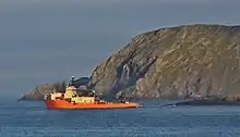 Fitful Head is a 283-metre-high (928 ft) headland at the southwest corner of Mainland, Shetland, Scotland, some 6 kilometres (3.7 mi) northwest of the island's southernmost point at Sumburgh Head. Its summit is crowned by a trig point adjacent to a NATS installation served by a restricted access vehicular track which ascends from the hamlet of Quendale to the east. There are numerous islets and sea stacks at the foot of the 3-kilometre (1.9 mi) stretch of cliffs which form the coast here.