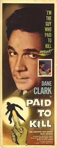 [1]Five Days is a 1954 British film noir directed by Montgomery Tully starring Dane Clark, Paul Carpenter and Thea Gregory.[2] It was produced by Hammer Film Productions and shot at Bray Studios with sets designed by the art director J. Elder Wills. It was made as a second feature for release on a double bill.[3] It was released in the United States by Lippert Pictures as Paid to Kill.