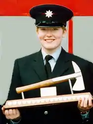 Fleur Lombard was one of only eight women among Avon's 700 firefighters.[5] On graduating in 1994, Lombard received the Silver Axe Award, for most outstanding recruit on her training school.[6] On 4 February 1996, when she was 21 years old, she was fighting a supermarket fire in Staple Hill, near Bristol, when she and her partner, Robert Seaman, were caught in a flashover. She was killed as a direct result of the intense heat and her body was found just a few yards from the exit. Lombard was the first female firefighter to die in peacetime service in Britain.[5][7]