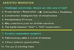 178. Barlow, Connie. "Assisted Migration or Assisted Colonization: What's In a Name? Part 3. Annotated List of Foundational Papers". Torreya Guardians. Retrieved 25 July 2022.