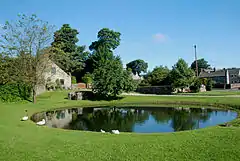 The village green contains an ornate Grade II listed[2] medieval cross, similar to the one at Wheston but possibly of later date. It has been suggested that it is 15th century.[2][3] It is inscribed with the date 1868, when it was moved from the site of the Wesleyan Reform Chapel and its shaft was replaced. A former bull ring lies in front of the cross.[4]