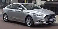 The fourth generation of the Ford Mondeo, (Mk 5 in the UK, codenamed MD[5] in Australia) is a range of mid-size cars[6][7] produced by Ford from 2013 to 2022. Developed under the model code CD391, it is a rebadged variant of the American-market Fusion sold in Europe, Latin America, China and Australia.[8] Revealed at the 2012 North American International Auto Show in Detroit, Michigan,[9] the Mondeo is based on a new iteration of Ford's C/D platform, which it shares with the Galaxy and S-Max large MPVs.[9] The Fusion had started production in 2012, which was about one year before the Mondeo had.[10] At its launch, it served as the flagship model for Ford's lineup in China, and was tested on Chinese roads in 2013.[11]
