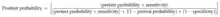 The equation results in a positive predictive value for a given pre-event or pretest prevalence. In a circumstance in which the pretest prevalence is considered “indifferent” the prevalence and (1-prevalence) values cancel out, and the calculation is a simplified to a positive predictive value.