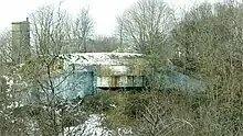 One of the two 12-inch gun positions and a fire control tower (at left) for Battery Gardner at Ft. Ruckman.