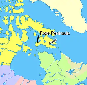 - ↑ "Foxe Peninsula". The Columbia Gazetteer of North America. bartleby.com. 2000. Archived from the original on 11 May 2005. Retrieved 24 September 2008.