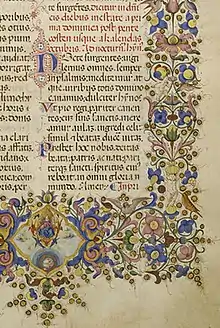 Francesco began his work as a goldsmith before turning to illuminating. No information has been uncovered about his family as a child or adult, or about how he began illuminating. Goldsmiths turned illuminists were very common at the time because goldsmiths were trained to create fine details in their work which translated well for illustrating tiny books. He was creative in the details he included in his work. For example, in Book of Hours of Lorenzo the Magnificent and Clarice Orsini he incorporates astrological symbols that correspond with each member of their family into his designs. This pleased the Medici so much that they hired him again to work on more books for them. Through Francesco's work it is also clear that he had at least some knowledge of ancient Roman works. In the fifteenth century, Roman works were popular, but only known to the public through descriptions and copies by famous artists. Only the best artists of the time were able to see the uncovered Roman works and less famous artists rarely got a chance. Nevertheless, it was very popular for artists to replicate the classics to the best of their abilities through descriptions of the Roman works. Francesco designed his floral arrangements and the many putti in a classical Roman way throughout his works.[2] Putti are commonly shown in Renaissance art; they are depictions of small naked children or, more typically, cherubs. Francesco's boldness and creativeness is exemplified by the numerous putti, candelabras, and the use of a rare sketch watercolor technique.