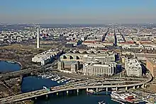 - ↑ " A photo from 1973 and a map from 1982 show the Circle without and with the causeway." Swanson, Dick (April 1973). "Southwest Washington, D.C. With South End Of L'Enfant Plaza In Foreground, Southwest Freeway, Department Of Agriculture And Washington Monument Beyond, April 1973". Flickr.com. Retrieved 22 July 2019.