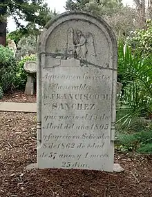 He also served as the leader of the failed Mexican military response to the June 14, 1846 California Republic insurrection which established United States control of Mexican California. Sánchez is buried at the Mission Dolores in San Francisco.