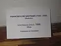 Francisco de Santiago remained active late in life. His leadership and the fruitfulness of his work have always been recognized and are reflected in the appointments and positions he held.[Notes 3] In Zacatecas, his work is exhibited in places like the Manuel Felguérez Museum of Abstract Art and the Municipal House of Culture, where one of the rooms bears his name.