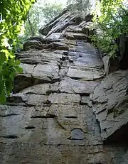 Franklin Gorge or just Franklin[1] or Cranklin Gorge[2] is a small sport climbing area near Spruce Knob–Seneca Rocks National Recreation Area located near Franklin, WV. This rock climbing spot was first discovered and developed by John Burcham and friends during the early-mid 90s. The site contains mostly sport and top rope climbing as well as some traditional climbing, and is located on private land. The rock is layered sandstone and some limestone which create horizontals, and the site has pockets and huecos for the majority of the holds. This site is the first place many Mid-Atlantic climbers cut their teeth on bolted rock climbing routes before going on to challenge the New River Gorge.