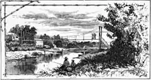 The first formal land sales for the new village of Frankston took place on 29 May 1854.[5][3][32] Frankston was gazetted in late-April of that year as being "well watered with springs...the odour and flavour of the water being remarkable".[32][33] The road to Melbourne was extended from Brighton to Frankston (now the Nepean Highway) with bridges over Kananook Creek and Mordialloc Creek in late 1854.[51]