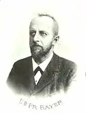 Bayer was born in Mšené-lázně and studied at the Písek gymnasium (1865-1873) before entering the University of Prague. After graduating in the natural sciences and mathematics with physics and obtaining a teaching certificat in 1880 he began to teach in grammar schools. In 1882 he described a bird fossil, Anas basaltica from tuffs near Warnsdorf. It was later placed in the genus Ardea.[1] He described another fossil that he again placed in the genus Anas, A. skalicensis, from Skalice near Litoměřice. He received a doctorate in 1883. He began to teach at the higher gymnasium in Domažlice (1876 - 1878) as a substitute teacher and then went to Tábor and simultaneously began his studies in osteology and paleontology. An early work on the osteology of frogs was critiqued by František Vejdovský for not examining immature stages. From 1890 to 1892 he taught at Písek. In 1888 he became a member of the Royal Czech Society of Sciences. He made several visits to Germany, the Netherlands, Belgium and London to examine paleontology collections. His most intense period of paleontological activity spanned 1893 to 1902. In 1896 he published a list of Cretaceous reptiles and fishes. In 1907, he became the director of the Jiráskovo Gymnasium. He studied paleontology and went on collecting trips as well as visits to museums. He collaborated with Antonín Frič on paleontological studies.[2] Frič encouraged Bayer to move focus from paleontological osteology to the osteology of extant vertebrates. He wrote on the evolution of the lizard tongue, particularly with an interest in the origin of forked tongues. Frič described the fossil fish Bayeria longipinna in Bayer's honour in 1905.[3] Bayer did not accept the subspecies concept or trinomial nomenclature. Bayer also wrote popular science articles in various periodicals. He edited parts of the Czech edition of Brehm's Tierleben dealing with reptiles, amphibians and fishes. He wrote a zoology textbook for secondary schools in 1900 along with Jan Nepomuk Woldřich. In 1925 he became a member of the National Research Council. He also took an interest in music and was a friend of Bedřich Smetana and Antonín Dvořák and composed a few small pieces. He also wrote for the music magazine Dalibor.[4][5]