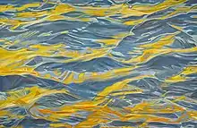 As a painter, photographer and curator, Foster focuses on the theme of water, using her art to raise awareness and explore its pivotal role in shaping the world socioeconomically, environmentally, and subconsciously.[3] An accomplished colorist using a limited palette and many layers of paint, she works within "the romantic landscape tradition of Dove. Hartley, Burchfield and O'Keeffe"[4][5][6] Having exhibited her work since the late 1970s, Foster's paintings and installations in the 1990s were inspired by the AIDS epidemic, centering on themes of healing and mortality.[7][8] Her artistic expression is also influenced by Buddhist practice, evident in her engagement in public discussions with composer Philip Glass on the intersection of Buddhist practice and art.[9][10][11][12][13]