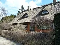 Close to the Swiss Cottage stands the Pheasantry (Da. Fasangården) which was designed by J.C. Krieger and built in 1723. As the name suggests, the building was originally built in connection with a pheasantry which raised pheasants for the royal household. When the park was redesigned around 1800, there were plans to tear down the house but instead it was turned into a residence for the king's private secretary, P.C. Jessen, who had already used it during summer since 1798.[9] The building was adapted in 1828 by Jørgen Hansen Koch. It served as summer residence for Adam Oehlenschläger and his family from 1842 to 1850.[10] It was carefully restored in 2019–2020 and is open tp the public as a restaurant.[11]