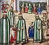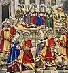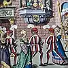 | 235 | ![]() | Tournament 59 Mummery | In this masquerade, the male dancers wear slashed doublets which dates the scene to around 1500 when that style was at the apex of fashion. The musicians play shawms, a form of woodwind instrument. | pp. 404-405 |