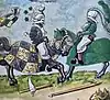 | 36 | ![]() | Tournament 9 Mummery | This painting depicts a moresca, a dance where the male dancers attempt to impress the watching ladies with wild jumps and twists. | pp. 106–107 |