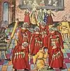 | 24 | ![]() | Tournament 6 Mummery | The revellers taking part in a circle dance, include members of the Losenstein, Schiffer and Tschermembl families. Mathias von Liechtenstein, who was brought up with Maximilian, also features in the scene. | pp. 88–90 |