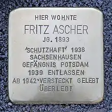 - ↑ For saving Fritz Ascher's life, Martha Graßmann was recognized as "Righteous Among The Nations" by Yad Vashem.