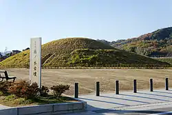Fujinoki tomb (藤ノ木古墳, Fujinoki-kofun) is a tumulus, known as a kofun in Japanese, located in Ikaruga, Nara Prefecture, Japan. It is estimated to date from the later half of the sixth century or the late seventh century.[1] The burial mound is about 40 or 48 metres in diameter, nine metres in height, and the stone chamber the mound covers is sixteen metres in length.[2] Excavation began in 1985. The tomb yielded gilt-bronze ornaments, horse trappings, and a stone coffin.