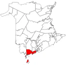 Fundy–The Isles–Saint John West (French: Fundy–Les-Îles–Saint-Jean-Ouest) is a provincial electoral district for the Legislative Assembly of New Brunswick, Canada.