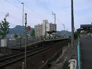 The station is served by the JR Shikoku Kōtoku Line and is located 10.8 km from the beginning of the line at Takamatsu.[3] Only local services stop at the station.[4]