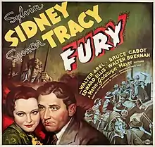 Fury is a 1936 American crime film directed by Fritz Lang that tells the story of an innocent man (Spencer Tracy) who narrowly escapes being burned to death by a lynch mob and the revenge he then seeks. The film was released by Metro-Goldwyn-Mayer and stars Sylvia Sidney and Tracy, with a supporting cast featuring Walter Abel, Bruce Cabot, Edward Ellis and Walter Brennan. Loosely based on the events surrounding the Brooke Hart murder in San Jose, California,[4] the film was adapted by Bartlett Cormack and Lang from the story Mob Rule by Norman Krasna. Fury was Lang's first American film.