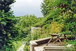 The goods yard with several ancillary buildings lay to the east and was approached from the south where the road was crossed by an overbridge. It had a weighing machine, a goods shed, loading dock and four sidings in all.[8] Several station houses and a police station stood nearby. The line was cut back to Turiff in 1961. The market stance stood on the east side of the goods yard.[9]