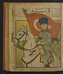 During the Turkish War of Independence (1919-1923) Güleryüz was the most influential humoristic magazine in Istanbul. It supported Mustafa Kemal Atatürk and frequently published his cartoons.[4] Moreover, it publicly contributed to the assumption that the war could be won.[5] Parts of its volumes were regularly censored.[5]