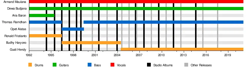 In 1999, Opet quit the band to allow Thomas rejoined the band after he finished rehabilitation process.[2] In 2004, Budhy Haryono left the band and replaced by Gusti Hendy.