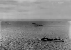 ![]() A convoy photographed from US Navy airship K-28, assigned to Blimp Squadron 24 (ZP-24) at Naval Air Station Weeksville, North Carolina (USA). | |