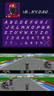 GP Race mode is a kind of career/season mode, where the player competes to earn a place on the podium. The Japanese version begins with a qualifying round in Japan, consisting of four local tracks, followed by the GP-1 World Championship (featuring all 14 circuits of the real-life 1994 Grand Prix motorcycle racing season). The North American version omits the preliminary round and goes straight to the world championship. At the Japanese qualifying round there are only three available motorcycles. In the world championship another three motorcycles are available.
