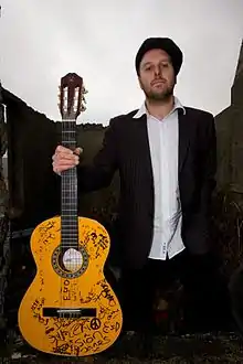 Gareth 'Gai' J Thomas 'Toms' (born 14 September 1976 in Bangor, Wales) is a Welsh singer-songwriter, musician, producer and actor. In 1992 he co-formed the popular Welsh ska-rock band Anweledig, which developed into one of Wales' top live party bands. From 1997 to 2007 he created an 'off the road' Welsh folk outfit Mim Twm Llai, releasing three albums on Recordiau Sain. Since 2008, he dropped the Mim Twm Llai pseudonym for his own lifelong nickname Gai Toms, performing solo on guitar or with his backing band. His latest album titled 'Orig', based on the life of Welsh wrestling legend Orig Williams (El Bandito), gave us Gai Toms a'r Banditos (Gai Toms & the Banditos).