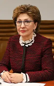 Galina Karelova was born on 29 June 1950 in Nizhnyaya Salda, Sverdlovsk Oblast. In 1972, she graduated from the Ural Federal University. From 1972 to 1990, she worked at the Ural State Technical University first as an assistant and, later, as a docent. In 1990, she was elected deputy of the Sverdlovsk Regional Council of People's Deputies. From 1993 to 1996, she was the senator of the Federation Council but left the position to become a deputy for the State Duma of the 2nd convocation. From 1997 to 2003, Karelova worked at the Ministry of Labour and Social Protection. From 2004 to 2007, she was the Chairman of the Social Insurance Fund of the Russian Federation. Later she was re-elected again as a deputy of the State Duma of the 5th and 6th convocaitons. On 22 September 2014, he became the senator from Volgograd Oblast.[1][2]