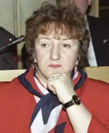 Galina Vasilyevna Starovoitova (Russian: Гали́на Васи́льевна Старово́йтова; 17 May 1946, in Chelyabinsk – 20 November 1998, in Saint Petersburg) was a Soviet dissident,[1] Russian politician and ethnographer known for her work to protect ethnic minorities and promote democratic reforms in Russia. She was shot to death in her apartment building in 1998.