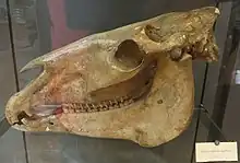 Skull of Equus caballus gallicus on display at the Gallery of Paleontology and Comparative Anatomy (National Museum of Natural History, France)