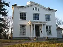 The disappearance of his office archive means that there is no way to assess the scope of his work for private clients. Mary M. Thacher surmises that three houses built round Lambert's Cove, Stonington, Connecticut, are the only documented houses attributed to King still standing today. The house of James Ingersoll Day was demolished following the Hurricane of 1938 but the Captain Nathaniel B. Palmer house on Pine Point, and the Stanton house, "Linden Hall"[11] remain. It is also likely that the undocumented Cove Lawn built in 1856 by the youngest of three Palmer brothers, Captain Theodore Dwight Palmer, was also designed by Gamaliel King. The Italianate King-Jellison House (1868), 330 Engle Street, Tenafly, New Jersey, built for George B. Jellison, a printer in New York City, who married Sarah King,[12] is attributed to King.[13]