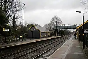 - ↑ Butt, R. V. J. (October 1995). The Directory of Railway Stations: details every public and private passenger station, halt, platform and stopping place, past and present (1st ed.). Sparkford: Patrick Stephens Ltd. p. 101. ISBN 978-1-85260-508-7. OCLC 60251199. OL 11956311M.