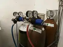 It is possible for gas blenders to create toxic and dangerous gas mixes for divers.[5][6] Too much or too little oxygen in the mix can be fatal for the diver. Oxygen analysers are used to measure the oxygen content of the mix after blending. Inadequate mixing may cause inaccurate analysis. To ensure that the composition of the gas is known by the end user, the contents are analysed in the presence of the diver who acknowledges the contents by signing a log.
