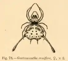 Gasteracantha remifera is a species of spiny orb-weaver spider in the genus Gasteracantha.[1] It is found in Sri Lanka and India, and it has a pair of long, club-shaped spines on its abdomen.