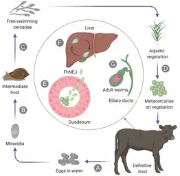 - 1 2 González-Miguel, Javier; Becerro-Recio, David; Siles-Lucas, Mar (2021-01-01). "Insights into Fasciola hepatica Juveniles: Crossing the Fasciolosis Rubicon". Trends in Parasitology. 37 (1): 35–47. doi:10.1016/j.pt.2020.09.007. ISSN 1471-4922. PMID 33067132.