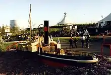 The Gateshead Garden Festival was the fourth of the United Kingdom's five national garden festivals. Held between May and October 1990, in Gateshead, Tyne and Wear, it lasted 157 days, and received over three million visitors.[1] Attractions included public art displays, a Ferris wheel, and dance, music, theatre and sporting events.[1] The site comprised four areas: Norwood, Riverside, Dunston and Eslington Park,[2] and several modes of transport were provided around the site: a monorail which ran between Norwood and Eslington, a narrow gauge steam railway between Dunston and Redheugh, and a road train which covered the entire site. A ferry across the River Tyne, between Dunston Staithes and Newcastle Quayside, was also provided.[1]