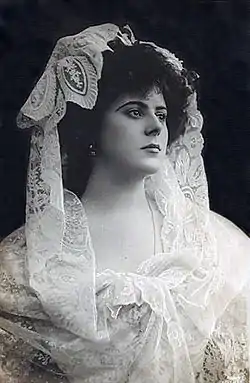 Rowlands began her career in the ballet of The Empire Theatre, London under Miss Katie Lanner, graduating in 1900.[1] She joined the company chorus line of George Edwardes’ Gaiety Theatre in 1900, toured India in 1901/02, and quickly became a star. In her time she became the most photographed of the "Gaiety Girls"; her roles were portrayed in numerous picture postcards. She was featured in periodicals such as The Era, The Stage, and The Play Pictorial, and in 1906, in The Illustrated Sporting and Dramatic News in scenes from The Spring Chicken.[1]