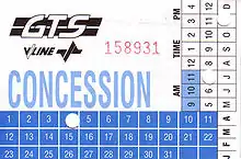 Until the introduction of the Myki ticketing system on GTS buses in March 2009, the network used a unified, time-based, multi-modal ticketing system, employing paper tickets issued by bus drivers and inspected manually. Tickets were valid for two hours, from the next full hour after they were purchased. Passengers could make unlimited transfers during the time the ticket is valid, on both urban buses and V/Line rail services within the GTS boundary.[7] GTS tickets were not valid in conjunction with V/Line travel beyond the GTS network boundary.