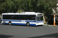 Although trials of a time-based ticketing system commenced in Geelong in the early 1980s as part of a reform of transport ticketing in Victoria,[3] it was not until 1983 that the Geelong Transit System was inaugurated.[4] Over time, buses delivering route services in Geelong were painted in the Geelong Transit System livery of white body and blue stripes. However, after Kefford Corporation purchased Benders Busways in 2000[5] its buses were progressively repainted into its own green and white livery,[4] and the other GTS operator, McHarry's Buslines, gradually followed suit, with its own overall white livery, including a red, yellow and black stripe. It became clear that after the renewal of the state government contracts governing the remaining two GTS bus operators in 2000, they were no longer required to use the common GTS livery.