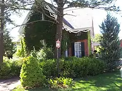 Bintliff's house in Monroe is in Gothic Revival style, characterized by the steep roof, the tall windows, and the elaborate bargeboards on the gables. The walls are brick, on a brick foundation. Parts of the house are lit by 9-foot French windows. Inside are a fireplace, a porcelain and glass chandelier in the dining room, and a spiral staircase.[3]