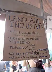 A sign at a feminists' protest in Madrid, Spain, explaining gender-neutral, inclusive language in Spanish