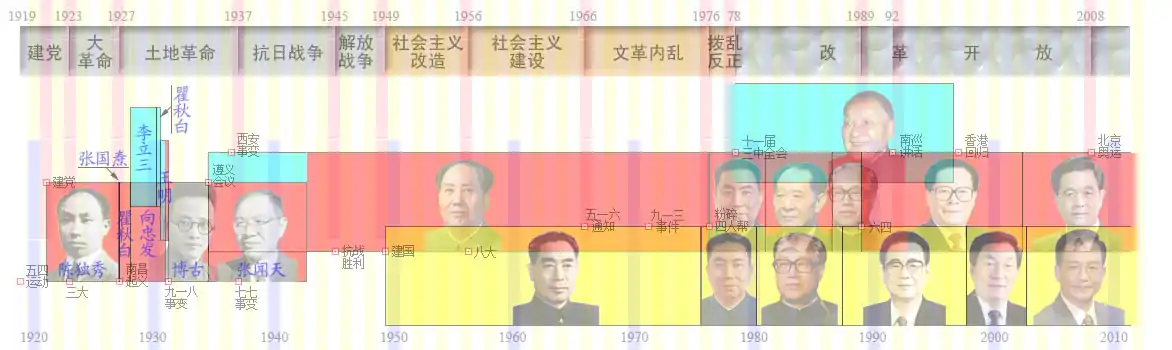 Generations of Chinese leadership is a term historians use to characterize distinct periods of the leadership of the Chinese Communist Party (CCP) and, by extension, successive changes in the ideology of the CCP. Historians have studied various periods in the development of the government of the People's Republic of China by reference to these "generations".[1]