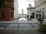 Out of Plaza 25 de Mayo, towards the river, between the cathedral and the municipal building, there is Pasaje Juramento ("Oath Passage"), leading to the Flag Memorial.