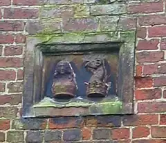 The Legh Keck coat of arms above the front porch at Bank Hall
